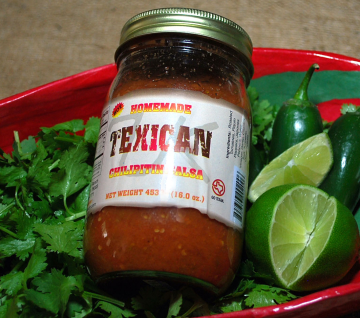 - Red or green homemade Texican Chilipitin salsa (16 oz. jars)